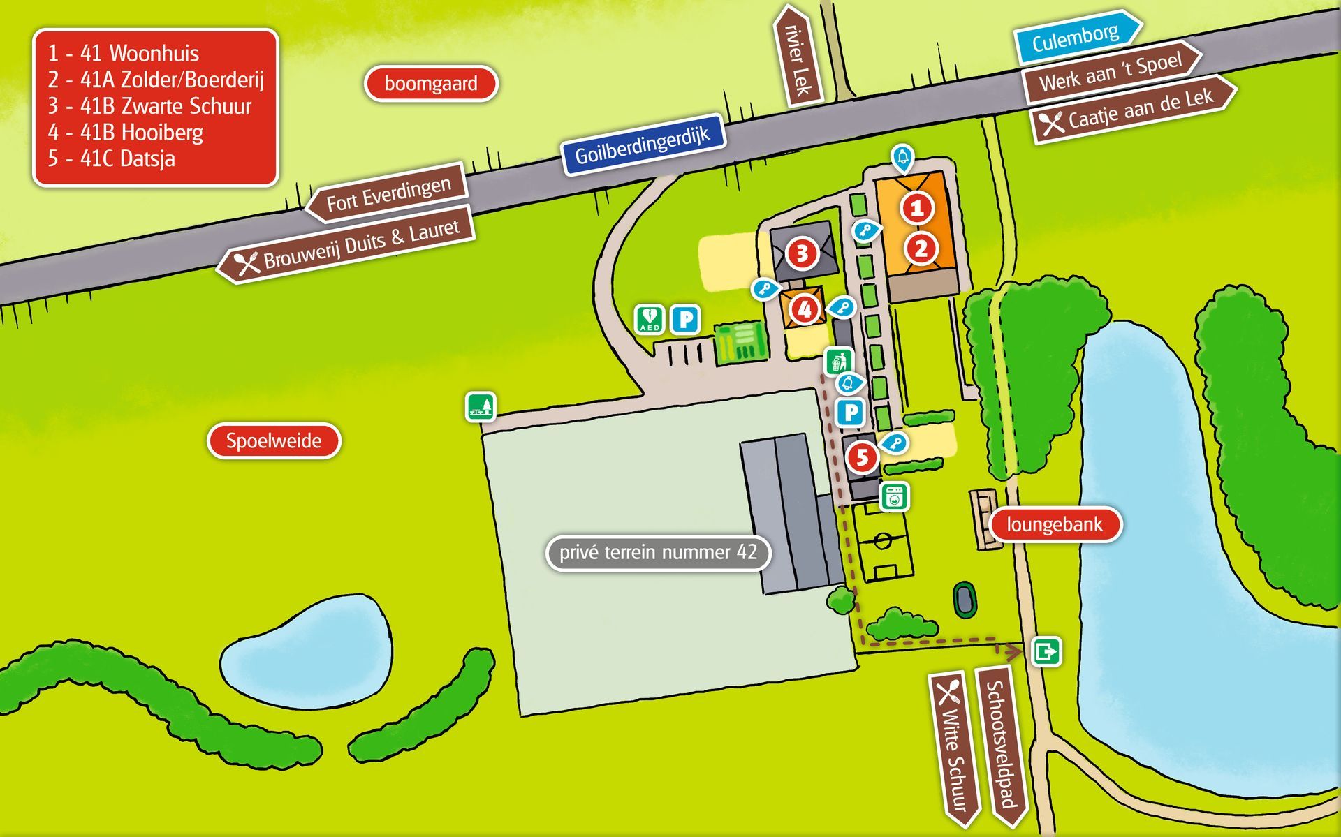 Het erf bestaat uit een boerderij van vóór 1648, gerenoveerd in 1906 en vanaf 2017, een zwarte schuur, gerenoveerd in 2018 op basis van de houten constructie uit de 18e eeuw, de hooiberg volledig gerenoveerd in 2020 op de plek van een eeuwenoude echte hooiberg en Olina's Datsja, een klein huisje voor onze (schoonmoeder) Olga die uiteindelijk met heimwee naar Oekraïne vertrok. In alle vier bieden we accommodatie en in de achtertuin en op de weide allerlei belevenissen om uw verblijf tot een feest te maken!